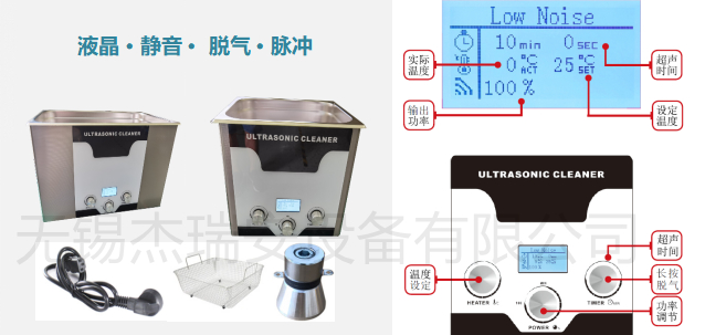 無錫杰瑞安液晶型功率可調(diào)超聲波清洗機(jī)除其本身具有的清洗功能外,還具有提取、乳化、加速溶解、粉碎、分散等多種功能。廣泛應(yīng)用于:機(jī)械、電子、塑膠、儀器儀表、環(huán)保、醫(yī)藥、包裝、軍工、航天航空、船舶、汽車等行業(yè)的制造及維修清洗。
